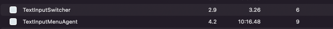 아니나 다를까, TextInputSwitcher라는 놈과 textInputMenuAgent 라는 놈이 2~4%의 CPU 사용량을 보이면서 치고 올라오는게 보였다. 저놈이다 TextInputSwitcher..